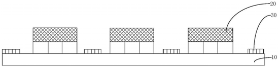 图1为本申请提供的MLED显示面板的截面示意图,包括衬底10、间隔设置在衬底上的发光器件20和TFT器件30,TFT器件又包括衬底上方的栅绝缘层40,栅绝缘层包括沿远离衬底方向依次层叠设置的第一子绝缘层401、第二子绝缘层402、第三子绝缘层403,栅绝缘层还包括补偿绝缘层404,其中氮原子数量与硅原子数量的比值至少大于子绝缘层中氮原子数量与硅原子数量的比值。