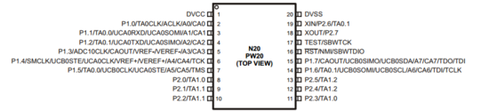 CAx、CAOUT对应的MSP430G2553管脚如下图所示。
