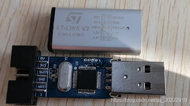以前网上买了一个ST-LINK烧写器,用了一段时间突然烧不了程序了。就扔那没管,今天无意中翻了出来打算拆开看看里面都有什么东西,结果拆开后发现只有一个STM32F103C8T6单片机,其他的基本没有什么东西了。