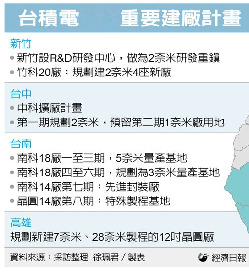据联合新闻网报道,位于中部科学园区(中科)的新工厂将占用周边的一个高尔夫球场以及部分公有土地。