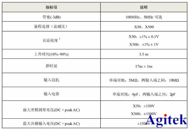 我们以ZP1500D高压差分探头为例,图4为其参数配置,一般来说不同的档位对应的带宽是不同的。ZP1500D的X50档配合5MHz带宽,适合测量低频信号,而X500档位配合100MHz带宽,高速信号测量必选。