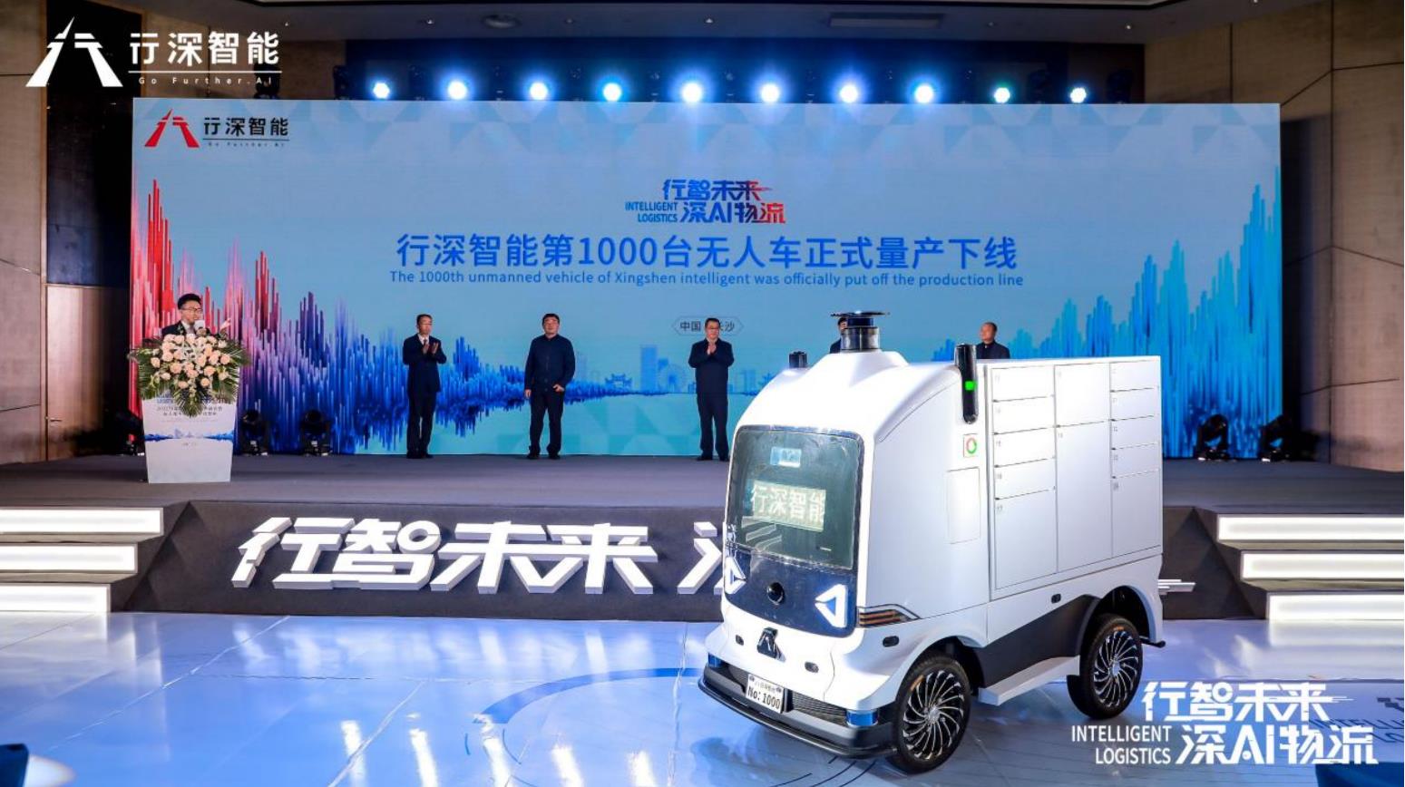 峰会上,行深智能宣布第1000台无人车正式量产下线并投入运营。同时,行深智能发布了最新款绝地系列无人车产品。湖南省工业与信息化厅党组成员、总经济师熊琛,清华大学计算机系教授、博士生导师、人工智能研究院主任孙富春,中国仓储与配送协会副会长王继祥,华为云计算咨询与解决方案部副部长王克俊等与会领导和嘉宾共同见证了这一历史性时刻。