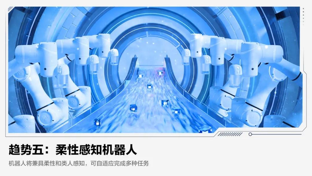 预计未来五年,柔性感知机器人将逐步替代传统工业机器人,成为产线上的主力设备,并在服务机器人领域开始规模化应用。
