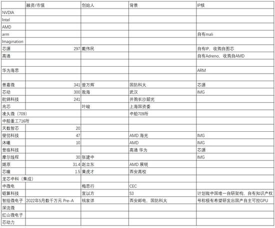 在PC和服务器GPU领域,核心的GPUIP厂商主要是Imagination、芯原、格兰菲;在移动GPU领域,主要有ArmMali、ImaginationPowerVR系列,芯原在前几年收购美国嵌入式GPU设计商图芯之后亦有不少授权用户,以及高通的Adreno。高通Adreno从AMD买入,且不对外销售。作为GPU的老牌巨头,英伟达、AMD均有自己的强大GPUIP,英特尔也购买了AMD的GPUIP要在独立GPU市场卷土重来。
