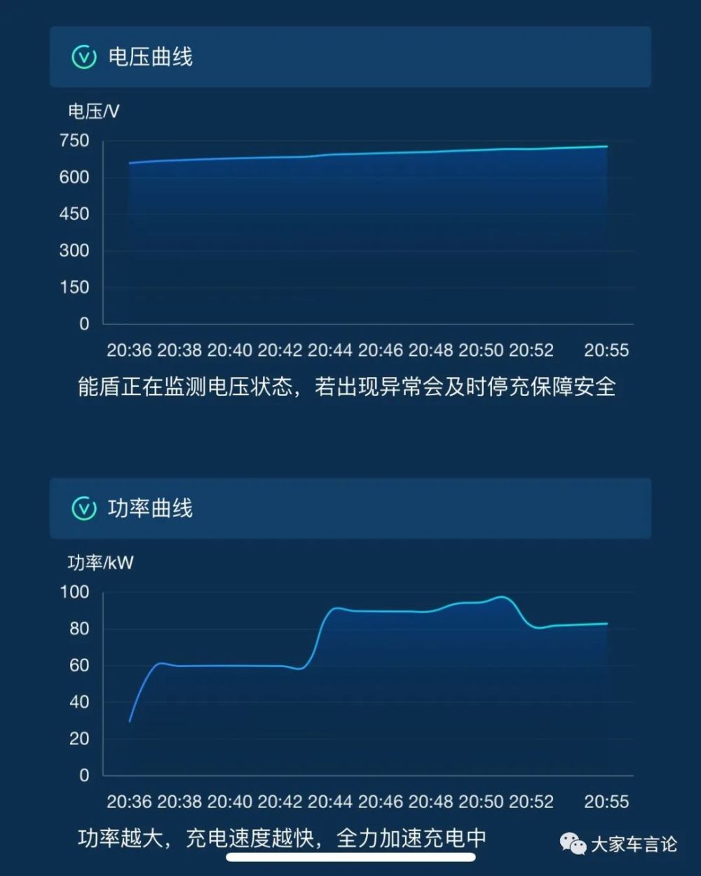 在充电方面也一样,此前极狐阿尔法S Hi版在第三方单枪120kw快充桩充电,虽然充电功率同样被限制在100kW左右,但此时平均电压都在700V左右,所以电流比其他400V平台车型小了一半,不会因为电池温度升高而影响充电速度。所以总的充电速度会比普通400V平台车型更快一些。