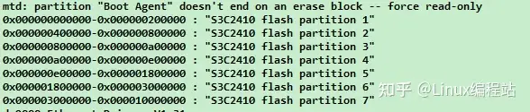 这样的分区,不是我们想要的,通过在内核代码中搜索 “S2C2410 flash partitions 1”可以找到位于 common-smdk.c中smdk_default_nand_part分区数组。