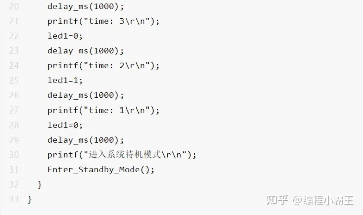 配置待机模式后,我们就可以编写主函数,代码如下: