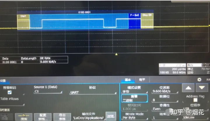 停止位:它是一帧数据的结束标志。可以是1bit、1.5bit、2bit的空闲电平。可能大家会觉得很奇怪,怎么会有1.5位~没错,确实有的。所以我在生产此uart信号时用两个波形点来表示一个bit,这个可以不必深究。