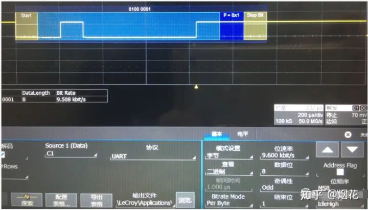上两图和下两图传送的数据和波特率都是一样的,但是有几个参数是故意设置反了从而形成对比。有助于更深入的理解UART。