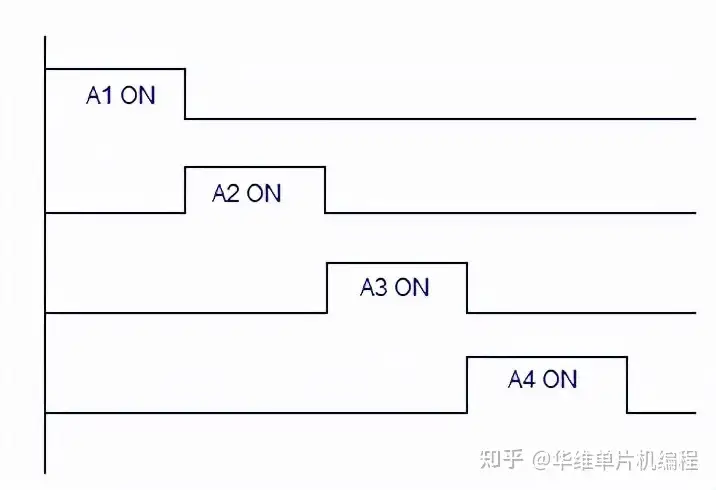 按照上图的引线顺序,按时序循环给A1、A2、A3、A4相应的控制。