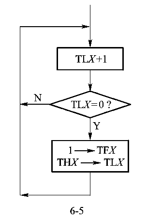 TLX作为常数缓冲器,当TLX计数溢出时,在置“1”溢出标志TFX的同时,还自动的将THX中的初值送至TLX,使TLX从初值开始重新计数。定时器/计数器的方式2工作过程如图6-5(X=0,1)。