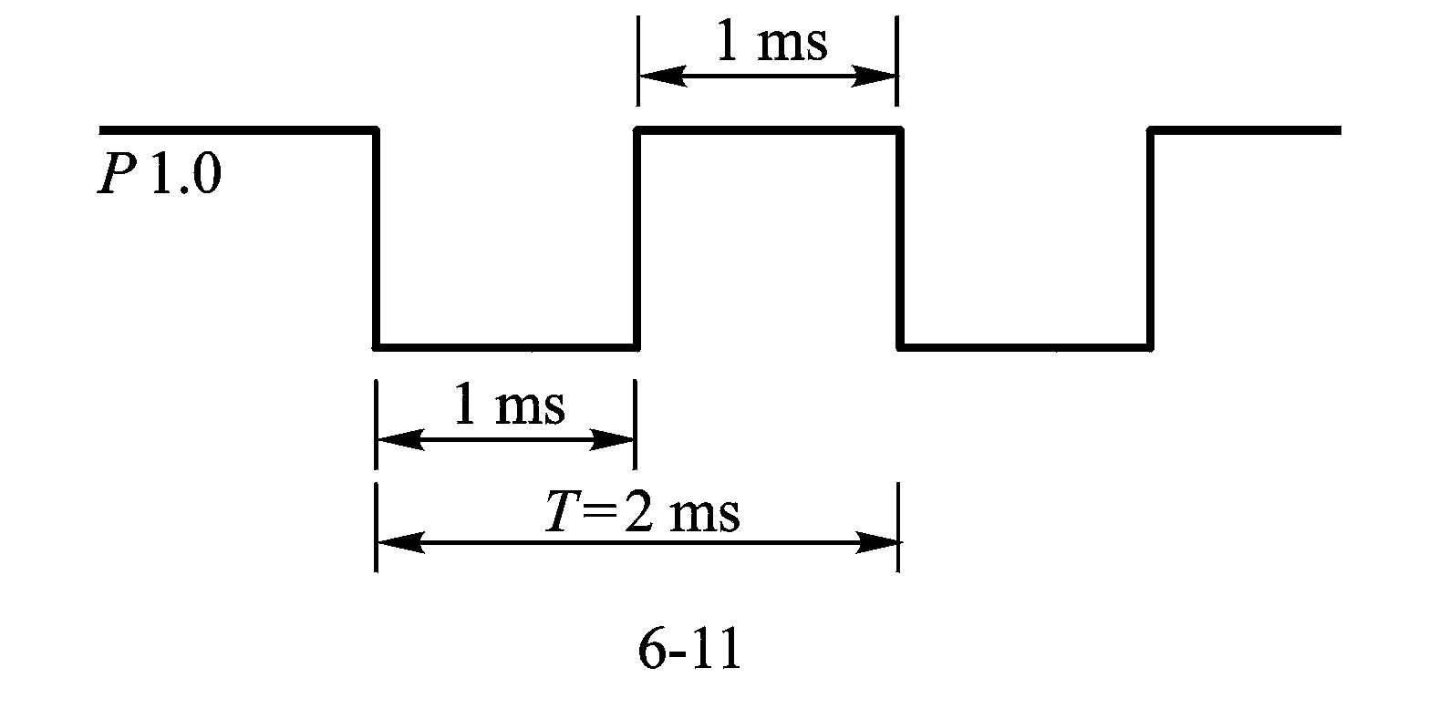例6-1 假设系统时钟频率采用6MHz,要在P1.0上输出一个周期为2ms的方波,如图所示。