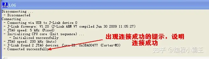 连接成功后,会有如下提示,否则说明板子与jlink之间连接有问题