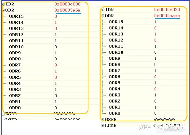 最后,简单验证下。看看按键时是否发生GPIOA输出的数据变化及灯亮暗。
