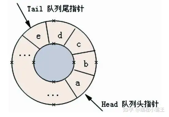 如此一来,相当于把这个数组的头和尾连了起来,成了一个封闭的环,这种处理方式,就叫做串口的循环队列。只要确保数组够大,处理速度够快,那么头和尾就不会撞上。当然,程序上也要对这种意外情况做一个处理。以下图片来自网络: