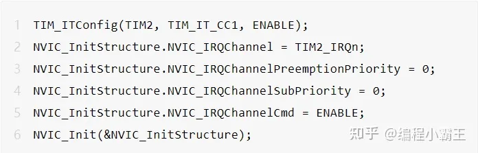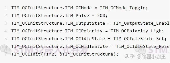 开启输出比较通道,设置输出比较模式为翻转模式,并配置NVIC,开启输出比较中断,配置输出比较通道: