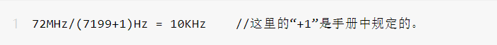 解释一下上面这行代码,由于定时器3(TIM3)是挂在APB1上的外设,所以要打开APB1,这里的预分频器值psc是来设置TIM3的时钟频率的,如果系统时钟(SYSTICK)频率为72MHz、psc为7199,则TIM3的时钟频率就为: