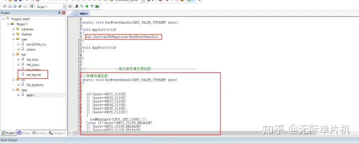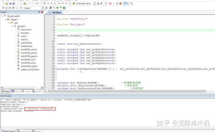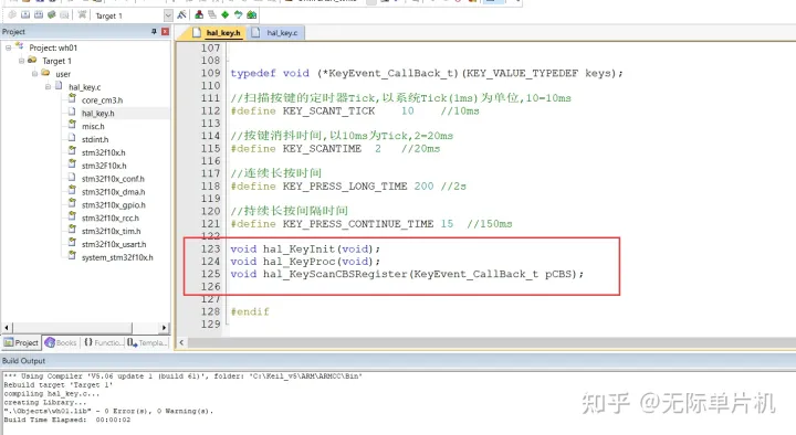 下面是用keil把我们代码生成.lib的方法,我用我们无际单片机编程的wifi报警主机项目按键功能模块举例。