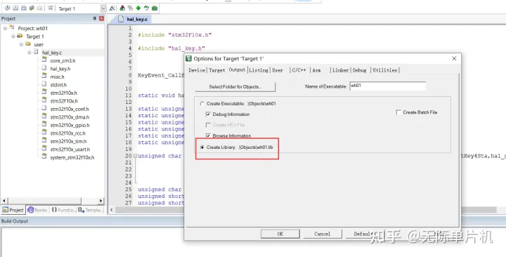 把需要生成lib的.c文件添加进来,这我需要把我按键功能模块代码生成lib,所以添加hal_key.c。