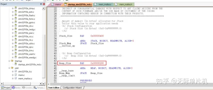 同样,在单片机启动文件里也有对堆大小的定义。