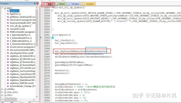 然后,我们在产品功能初始化的函数里直接调用刚刚hal_key.c的注册函数。