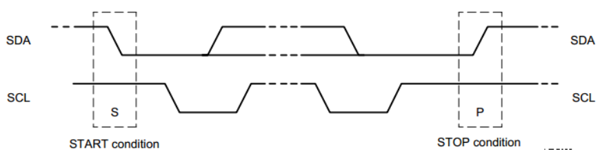 信号的起始:SCL高电平时,SDA产生一个下降沿