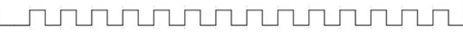 这样的时序图代表着信号线的电平在0和1之间反复横跳,按这种规律变化的信号线常常被人们用来传输时钟信号(类似于前面举起蓝旗又放下的例子)。由于实际器件是无法做到瞬时改变电压值的,所以在跳变沿的地方有时也会是一个斜线而不是一条垂直线。