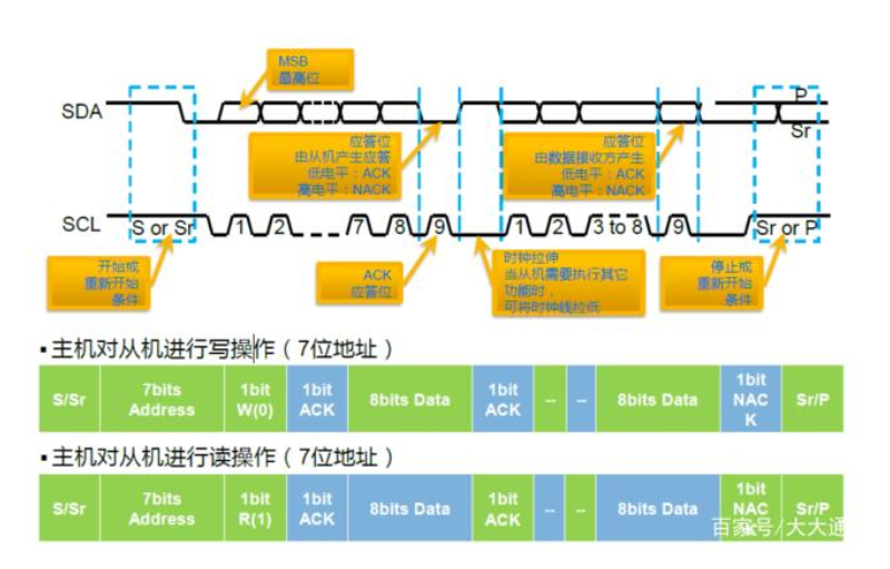 好,理解了这两个基本的时序图,我们就足以阅读I2C的时序图了。