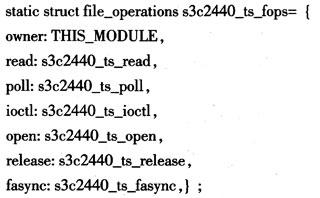 本结构的主要作用是为不同的设备提供一致的接口。如在应用程序中,对不同设备进行读操作都使用read函数,写操作则都使用write函数。因此,编写触摸屏驱动的实际工作并不复杂。