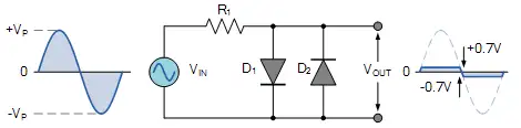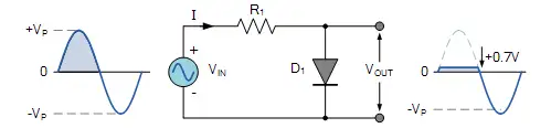 如下图所示,当在正半周期,并且VIN大于等于0.7V,二极管正向导通。此时,VOUT会被钳位在0.7V上。