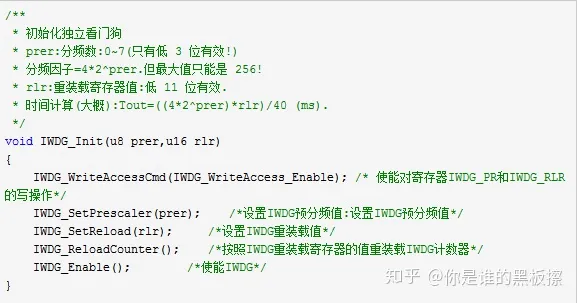 void IWDG_SetPrescaler(uint8_t IWDG_Prescaler); //设置 IWDG 预分频值