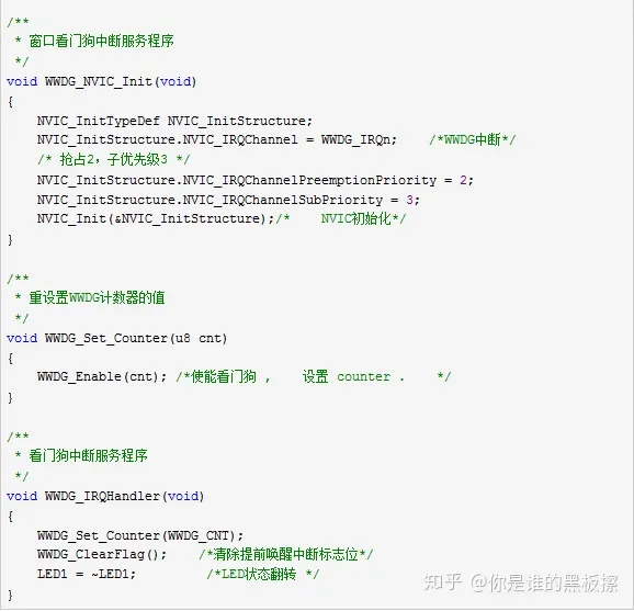 1、有个7位递减计数器(WWDG->CR),就这个计数器和窗口计数器(WWDG->CFR)决定什么时候喂狗。狗喂早了,复位——“早”体现在 计数器值(tr)>窗口值(wr),也就是计数器值还没有减到窗口值以下;