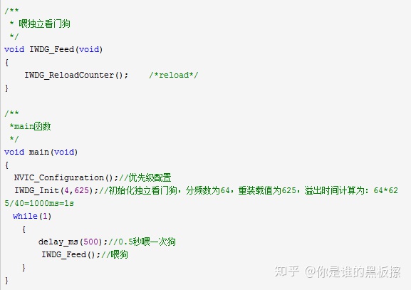 IWDG_ReloadCounter(); //按照 IWDG 重装载寄存器的值重装载 IWDG 计数器