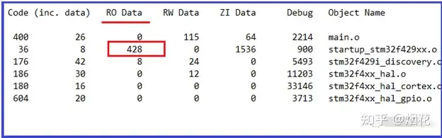 上图是基于STM32F429的工程编译后产生的,那个428 Bytes只读数据怎么来的?