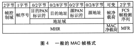 其中,MHR有固定的顺序,并不是所有的帧都包含地址域。一般的MAC帧格式如图4所示。