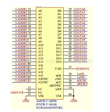 片选接了GCS0,那么norflash寻址范围是多少呢?首先,选用的芯片是EN29系列,