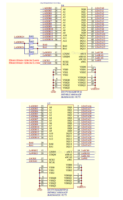 接下来说一下SDRAM,电路图如下