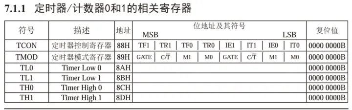 总共TCON、TMOD、TL0、TL1、TH0、TH1, 6个寄存器参与了配置定时器0。