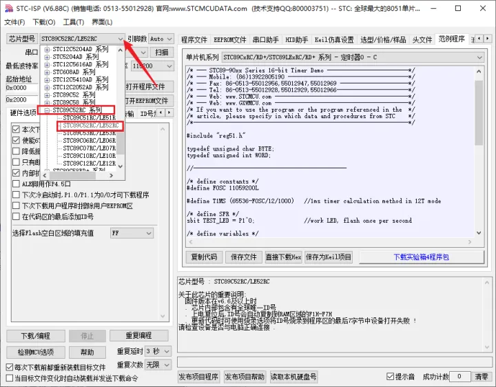 下载STC-ISP stc系列单片机的烧写程序 http://www.stcmcudata.com/STCISP/stc-isp-15xx-v6.88F.zip