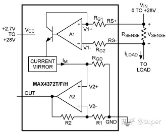 如上图,如果图中运放的 GND 引脚以 RSENSE 的正端为基准,那么其共模输入范围必须覆盖至零以下,也就是GND - (RSENSE × ILOAD)。Rsensor将地(GND)隔开了。