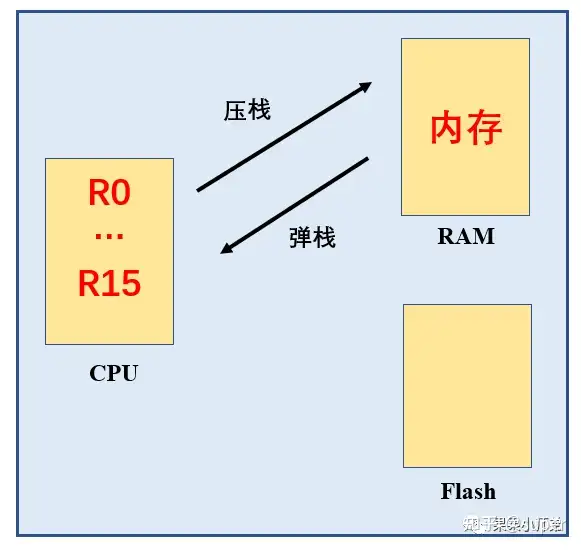 对于函数B:我用到R4-R11中的某一个,我都会在函数入口保存、在函数返回前恢复,从内存中弹栈到CPU的寄存器中;保证在B函数调用前后,函数A看到的R4-R11保存不变。