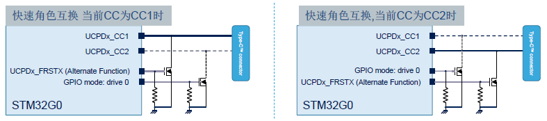 UCPD_CR寄存器的FRSRXEN位用来控制快速角色互换检测。