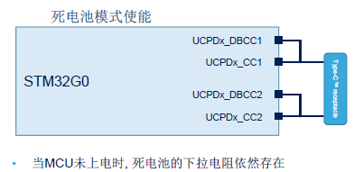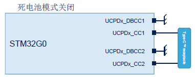 提供低功耗操作接口,兼容stop模式,在低功耗模式下有能力检测USB PD消息和FRS信号,UCPD可以配置成唤醒MCU。