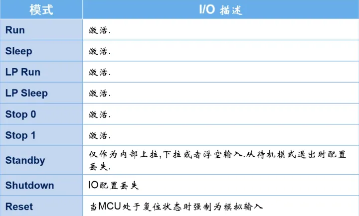 I/O管脚在低功耗模式下的状态