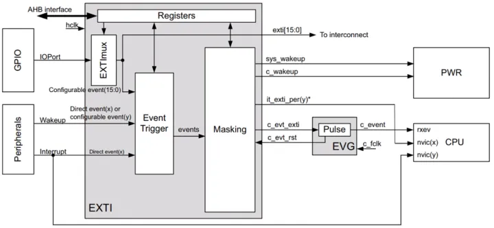 从stop模式唤醒,生成中断和事件,独立的中断和事件屏蔽。