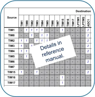 互联矩阵就是一个外设可以触发另一个外设工作,而CPU不用参与。