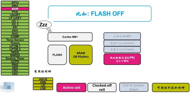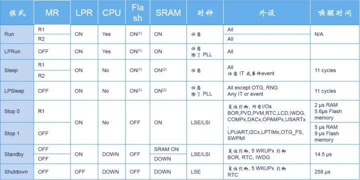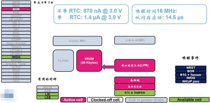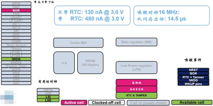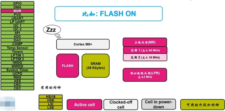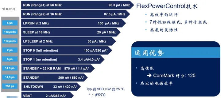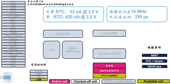 L系列也就是LOW POWER系列,它的低功耗模式是非常多的,一个好的低功耗产品有别于普通的MCU产品,一定是说它有不同的低功耗模式可供选配。