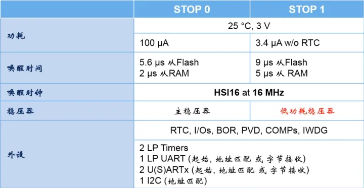 L4有一个stop 2模式,在所有STM32的产品中stop模式基本上基本上都是功耗最低的,执行到stop唤醒之后程序还可以进行下去,其他比stop模式功耗更低的模式,在程序唤醒之后就是reset,不可以再继续往下走。