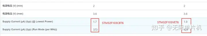 相对来说,stm32f103VET6的功耗更高,毕竟外设资源多嘛。