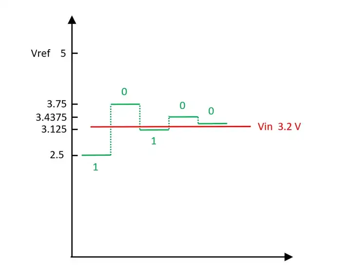假设ADC参考电压为0-5V,输入为3.2V。